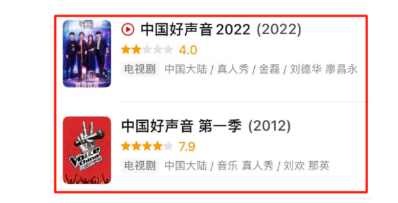 11年前《中國好聲音》的評分高達7.9分,到去年只剩下4.0分。