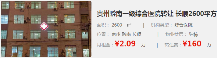 貴州黔南一級綜合醫(yī)院轉(zhuǎn)讓 長順2600平方