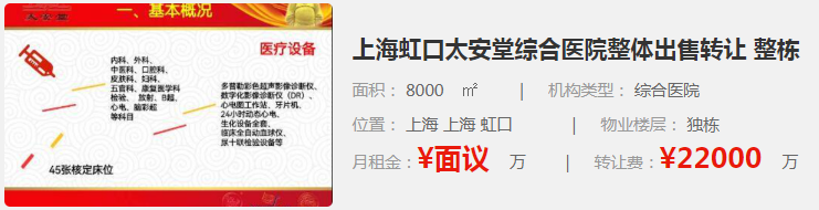 上海虹口太安堂綜合醫(yī)院整體出售轉(zhuǎn)讓