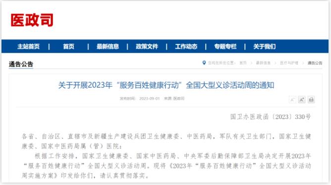 2023年“服務(wù)百姓健康行動(dòng)”全國大型義診活動(dòng)周實(shí)施方案