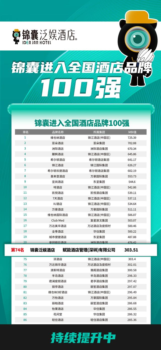 錦囊泛娛酒店(原:錦囊青年酒店)為賦能酒店管理(深圳)有限公司旗下品牌。公司創(chuàng)建于2009年,旗下有錦囊泛娛酒店、錦囊電競泛娛酒店、IDEA電競酒店等品牌。