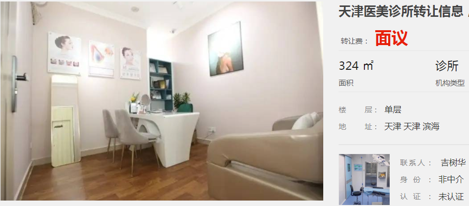 天津?yàn)I海新區(qū)324平方米的醫(yī)美診所轉(zhuǎn)讓,月租金為1.5萬元,轉(zhuǎn)讓費(fèi)為面議。