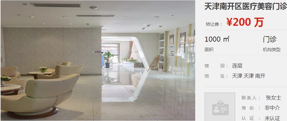 天津南開區(qū)1000平方米的醫(yī)療美容門診部轉(zhuǎn)讓,月租金為5萬元,轉(zhuǎn)讓費(fèi)為200萬元。