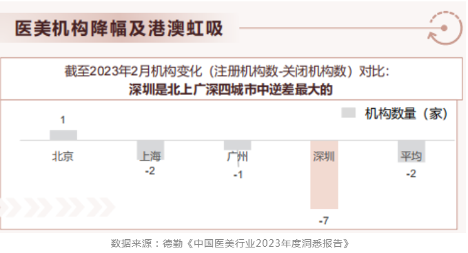 作為經(jīng)濟(jì)特區(qū),利好政策推動著醫(yī)美蓬勃發(fā)展,醫(yī)生創(chuàng)業(yè)型單店機(jī)構(gòu)占比較高。機(jī)構(gòu)更加關(guān)注客戶體驗(yàn)和內(nèi)部運(yùn)營,同時(shí)背靠港澳先天的醫(yī)美優(yōu)勢,虹吸效應(yīng)明顯。但同時(shí),注冊機(jī)構(gòu)與關(guān)閉機(jī)構(gòu)的逆差額也遠(yuǎn)高于其他一線城市。