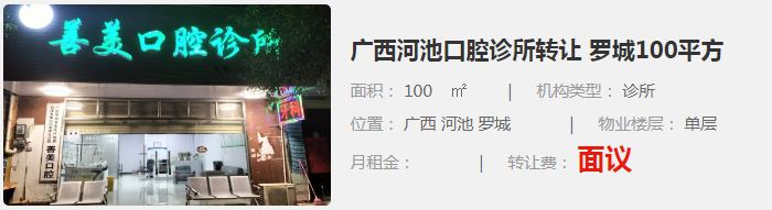 以下是口腔診所轉(zhuǎn)讓的信息: