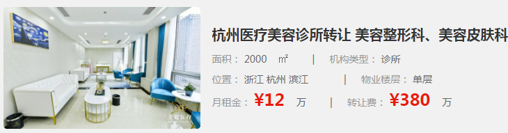 2.杭州濱江醫(yī)療美容診所轉(zhuǎn)讓: