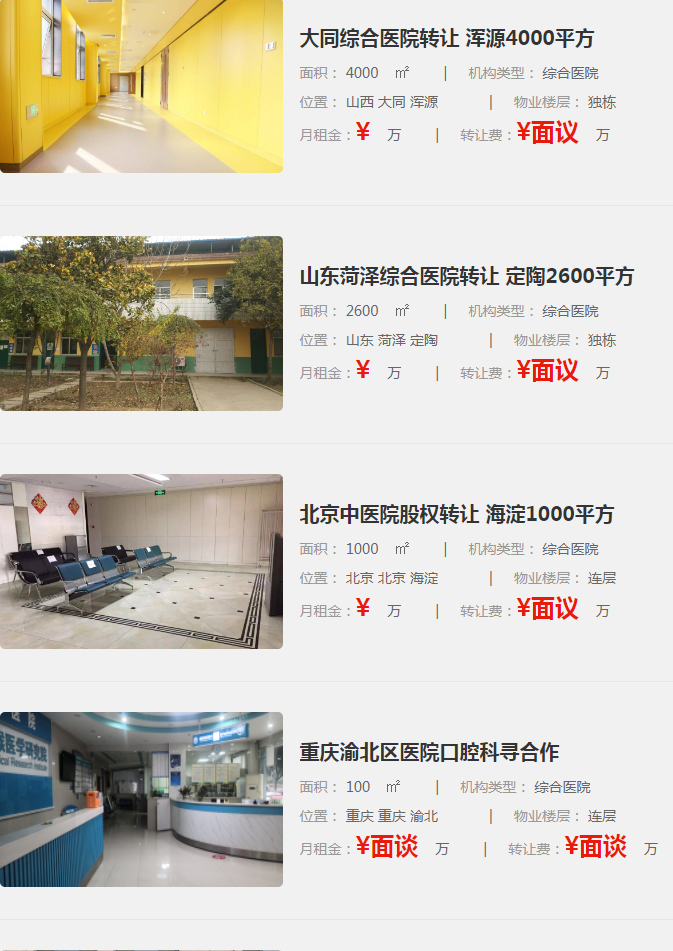 北京民營醫(yī)院出售或轉讓、重慶民營醫(yī)院出售或轉讓、大同民營醫(yī)院出售或轉讓、菏澤民營醫(yī)院出售或轉讓