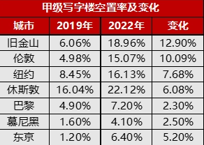 在全球范圍內(nèi),不僅是中國(guó),即使是全球主要城市如紐約、倫敦等地的寫字樓空置率也在上升。根據(jù)麥肯錫的數(shù)據(jù)顯示,過(guò)去三年中,舊金山、倫敦、紐約、休斯敦、巴黎、慕尼黑、東京等城市的寫字樓空置率均呈上升趨勢(shì)。其中舊金山的增幅最高,達(dá)到驚人的12.9%;倫敦緊隨其后,增幅為10.1%;而巴黎和慕尼黑的增幅最低,分別是2.3%和2.5%。