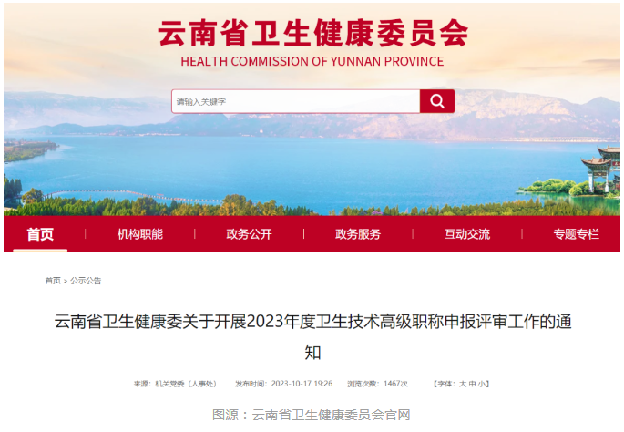 10月17日,云南省衛(wèi)健委也發(fā)布了一則《云南省衛(wèi)生健康委關(guān)于開展 2023 年度衛(wèi)生技術(shù)高級(jí)職稱申報(bào)評(píng)審工作的通知》。
