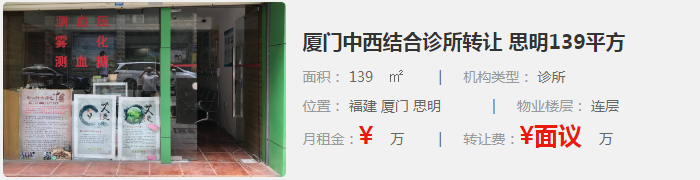 五、廈門中西結(jié)合診所轉(zhuǎn)讓(思明)
