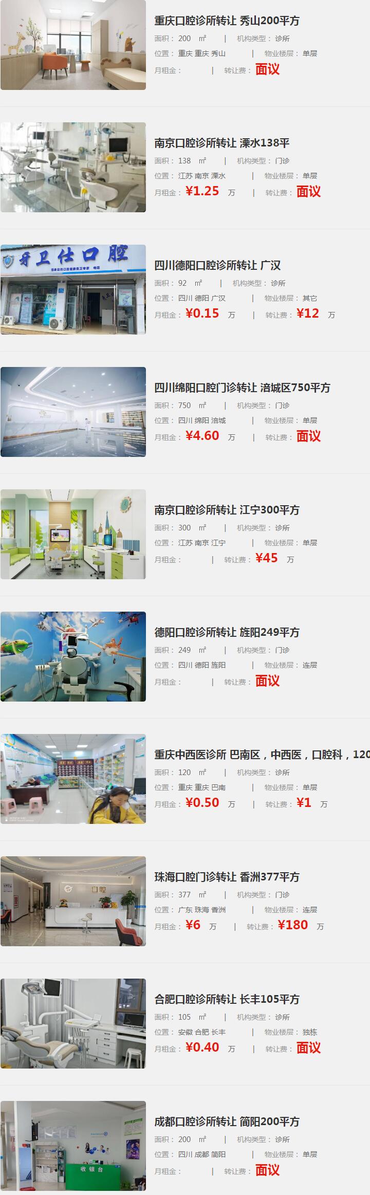 重慶口腔診所轉(zhuǎn)讓、南京口腔診所轉(zhuǎn)讓、成都口腔診所轉(zhuǎn)讓、德陽口腔診所轉(zhuǎn)讓、合肥口腔診所轉(zhuǎn)讓、珠??谇辉\所轉(zhuǎn)讓