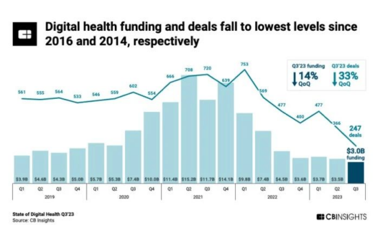 近日,CB Insights發(fā)布了2023年第三季度數(shù)字健康狀況報(bào)告(State of Digital Health Q3’23 Report),一定程度上呈現(xiàn)了全球數(shù)字醫(yī)療融資投資真實(shí)現(xiàn)狀。