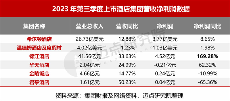 本季度,在營收方面僅有1家(溫德姆酒店及度假村)呈現(xiàn)略微下降現(xiàn)象,整體行業(yè)基本呈現(xiàn)正態(tài)走向。在凈利潤方面,上市酒店集團呈現(xiàn)明顯的兩級分化現(xiàn)象,錦江酒店以同比增長169.28%的數(shù)值,遠(yuǎn)超于其他酒店集團,而君亭酒店,則呈現(xiàn)一定程度的下降,同比下跌65.36%,這表明君亭酒店在利潤把控點上仍有巨大提升空間。
