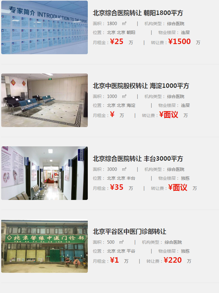 以下是指點(diǎn)網(wǎng)提供北京地區(qū)醫(yī)療機(jī)構(gòu)轉(zhuǎn)讓信息的整理: