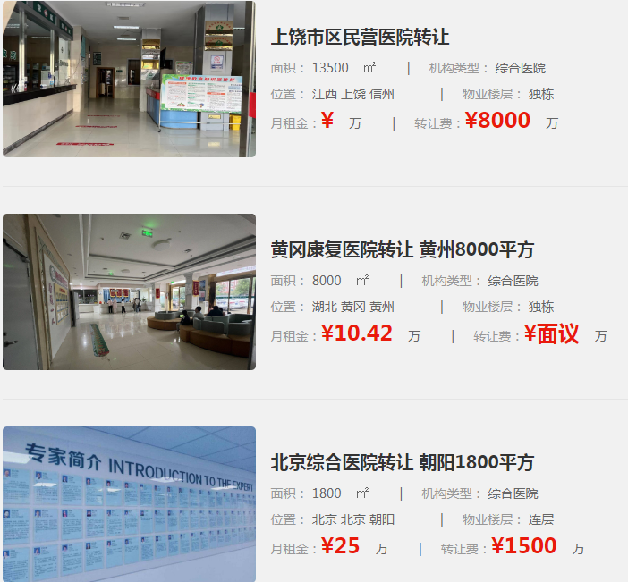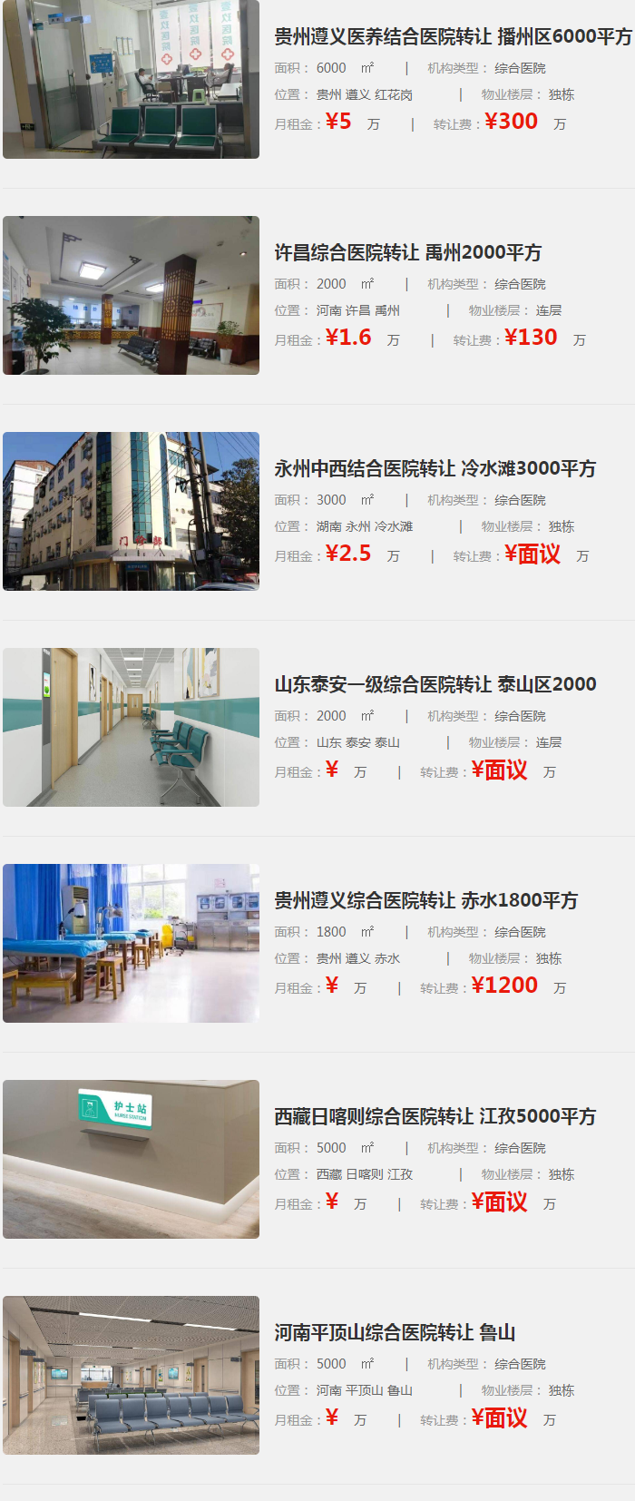 此外,一些醫(yī)療機(jī)構(gòu)的月租金和轉(zhuǎn)讓費(fèi)用是面議的,這意味著具體的費(fèi)用需要進(jìn)一步商議。這可能受到醫(yī)院設(shè)施、裝修、設(shè)備狀況等因素的影響。