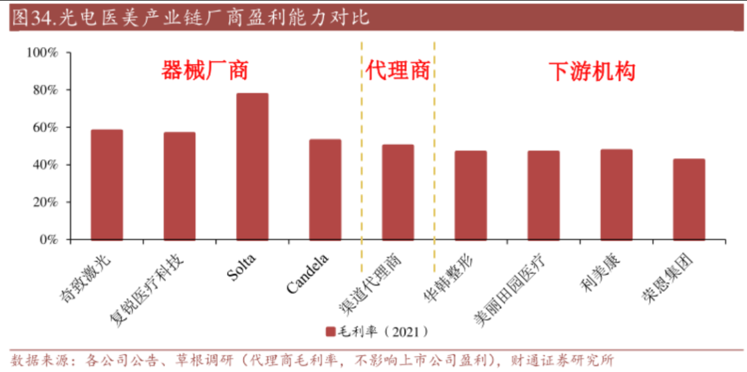 另外,光電醫(yī)美作為目前醫(yī)美機構獲客引流的新主要手段,上游醫(yī)美廠商也可以通過切入光電設備制造,來構筑品牌體系的優(yōu)勢。