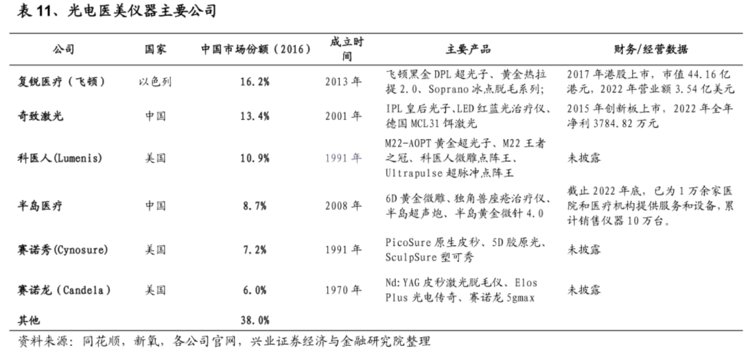 從光電醫(yī)美國內目前頭部企業(yè)情況來看,未有巨頭出現(xiàn),整體競爭力和發(fā)展階段處于早期,這樣具備巨大潛力和競爭格局良好的市場,令上市醫(yī)美巨頭垂涎并不出奇。