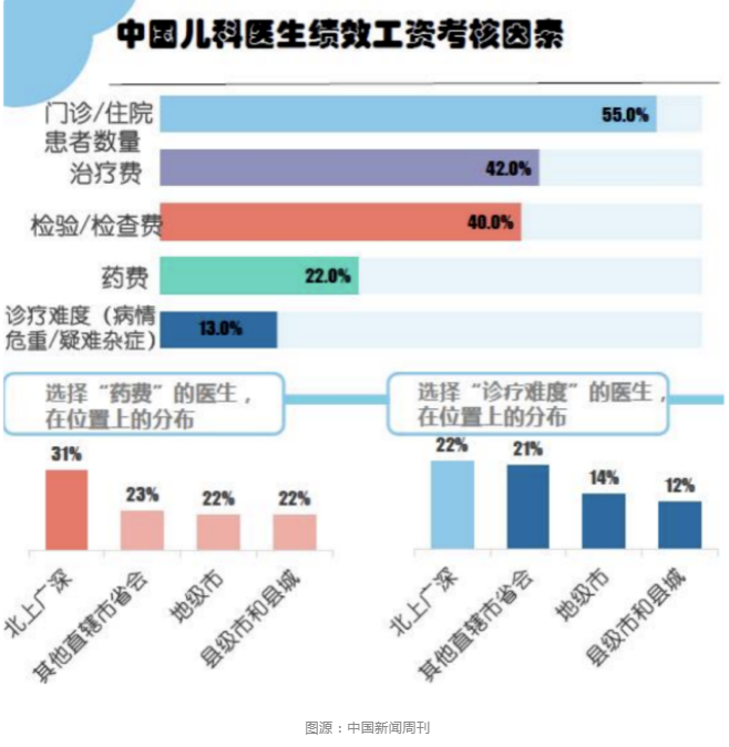 相比成人科室,兒科一般開藥少,藥物用量少,檢驗項目少,收入結構主要依靠診費和基本藥費,兒科科室的效益低特征在綜合型醫(yī)院中不被重視,學科建設和投入也常處于邊緣地帶,績效薪酬也常處低位,青年兒科醫(yī)生人才流失轉崗現(xiàn)象較多。