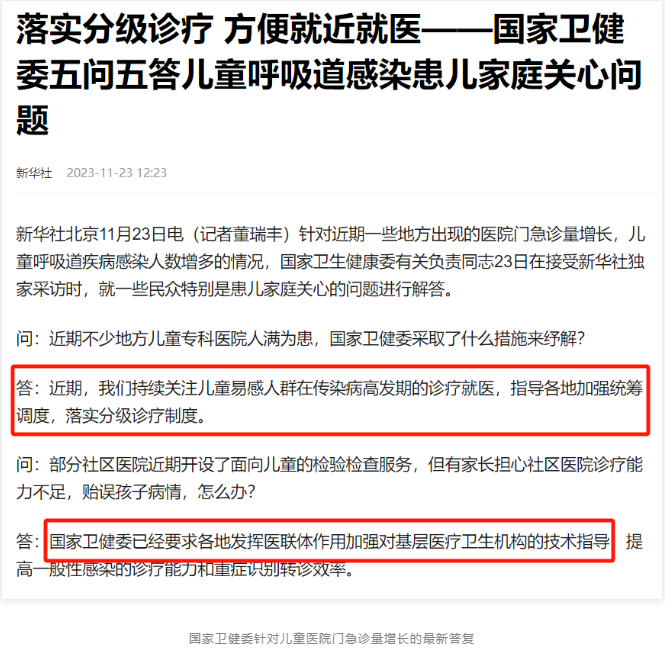 入秋以來,以支原體肺炎、流感為主誘因的兒童呼吸道感染疾病高發(fā),華北、東北、華東等全國多地兒童醫(yī)院、綜合醫(yī)院兒科門診迎來就診高峰,兒科從疫情三年期間從“遇冷”寒冬回彈到“爆滿”突破就診峰值背后,兒科分級診療建設和兒童醫(yī)療資源供給依然面臨著嚴峻挑戰(zhàn)。