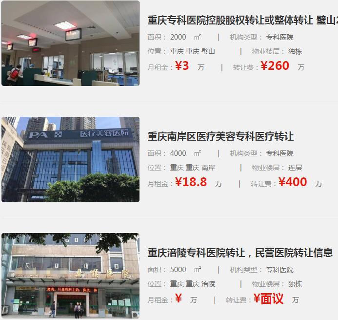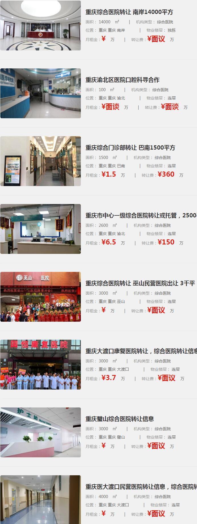 重慶市中心一級綜合醫(yī)院、巫山民營醫(yī)院、重慶大渡口康復醫(yī)院等綜合醫(yī)院的轉讓信息顯示,這些醫(yī)院的面積較大,位置分布在不同城區(qū),月租金和轉讓費各有差異。這反映出重慶市綜合醫(yī)院市場的多樣性和競爭激烈程度。綜合醫(yī)院通常能夠提供全方位的醫(yī)療服務,因此在市場上具有較大的吸引力。