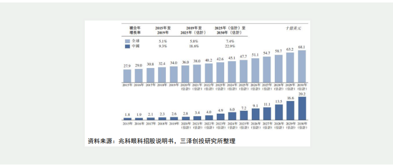 圖3:2015 年至 2030 年全球/中國(guó)眼科藥物市場(chǎng)規(guī)模