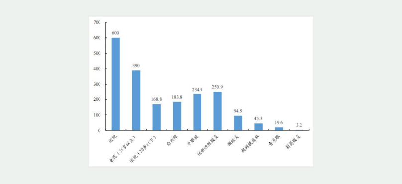 圖4:我國(guó)眼科疾病患者基數(shù)龐大(百萬(wàn)人)