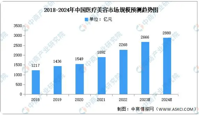 近年來(lái),消費(fèi)者愛(ài)美需求日益旺盛,我國(guó)醫(yī)療美容行業(yè)發(fā)展迅速,市場(chǎng)規(guī)模持續(xù)增長(zhǎng)。中商產(chǎn)業(yè)研究院發(fā)布的《2022-2027年中國(guó)醫(yī)療美容行業(yè)深度分析及發(fā)展趨勢(shì)研究預(yù)測(cè)報(bào)告》顯示,2022年中國(guó)醫(yī)療美容市場(chǎng)規(guī)模達(dá)2268億元,同比增長(zhǎng)19.87%。中商產(chǎn)業(yè)研究院分析師預(yù)測(cè),2023年我國(guó)醫(yī)療美容市場(chǎng)規(guī)模將達(dá)2666億元,2024年將達(dá)2880億元。