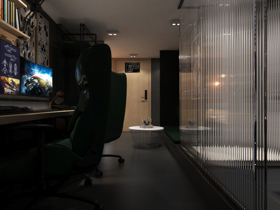 個(gè)性化設(shè)計(jì):電競房裝修效果圖會(huì)根據(jù)玩家的個(gè)人喜好進(jìn)行個(gè)性化設(shè)計(jì),如定制的主題墻、特色的裝飾品等。這些個(gè)性化的設(shè)計(jì)能夠體現(xiàn)出玩家的個(gè)性和品味,使得電競房更加獨(dú)特和有趣。