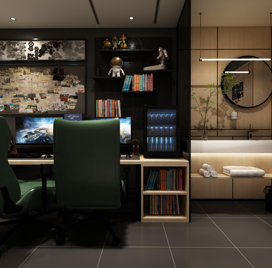 空間布局合理:電競房裝修效果圖會(huì)考慮到各種設(shè)備的擺放位置,以及玩家的活動(dòng)空間,使得整個(gè)房間的空間布局既美觀又實(shí)用。合理的空間布局不僅能夠提升玩家的游戲體驗(yàn),也能夠讓房間看起來更加整潔舒適。