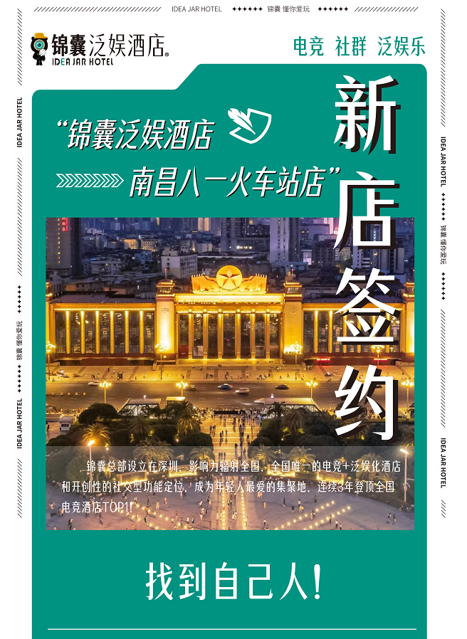 錦囊泛娛酒店已正式簽約南昌市的心臟地帶——八一火車站店。作為一家致力于為賓客提供高品質(zhì)住宿體驗(yàn)的電競酒店品牌,錦囊泛娛酒店將充分挖掘和利用南昌的城市特點(diǎn),如紅色之都、英雄之城、革命圣地等元素,打造一處集休閑、娛樂、文化于一體的特色電競酒店。