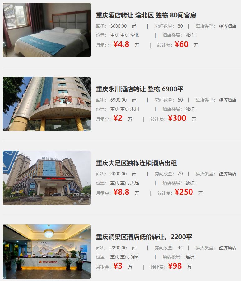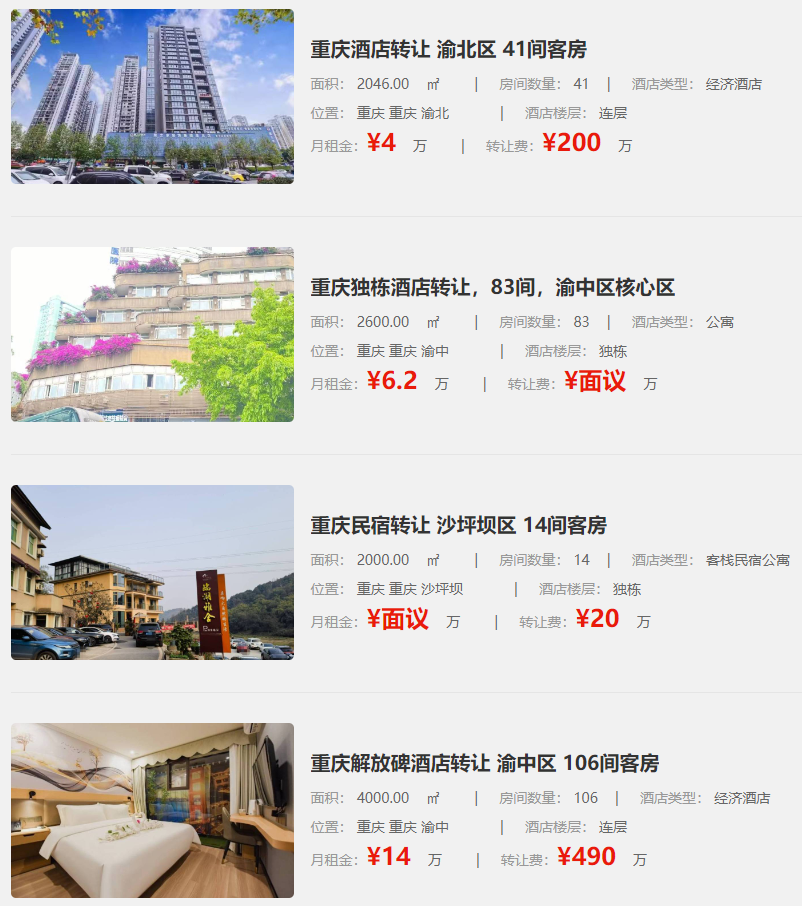重慶酒店轉讓 渝北區(qū) 41間客房