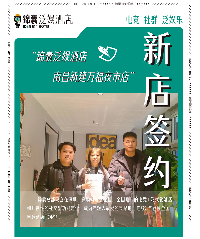 南昌,一座充滿(mǎn)活力的城市,再次迎來(lái)了泛娛樂(lè)的新風(fēng)潮。繼南昌八一火車(chē)站店和南昌萬(wàn)壽廣場(chǎng)店后,錦囊泛娛酒店宣布在南昌新建區(qū)萬(wàn)福夜市商圈再添新簽約加盟店。這標(biāo)志著錦囊泛娛酒店在南昌的持續(xù)擴(kuò)張,以及其對(duì)年輕人娛樂(lè)生活方式的深刻影響。