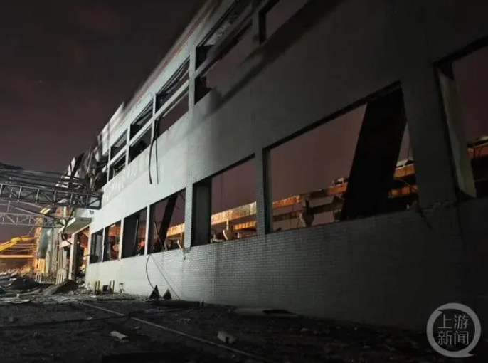 在爆炸后的現(xiàn)場(chǎng),記者看到,在爆炸車間東側(cè)一間廠房內(nèi),仍有設(shè)備正在運(yùn)轉(zhuǎn),廠房內(nèi)張貼有“推行安全生產(chǎn)標(biāo)準(zhǔn)化 提高員工健康安全意識(shí)”的安全提示。航拍畫面顯示,發(fā)生爆炸的廠房屋頂大部分已被炸毀,多處墻體損毀嚴(yán)重。