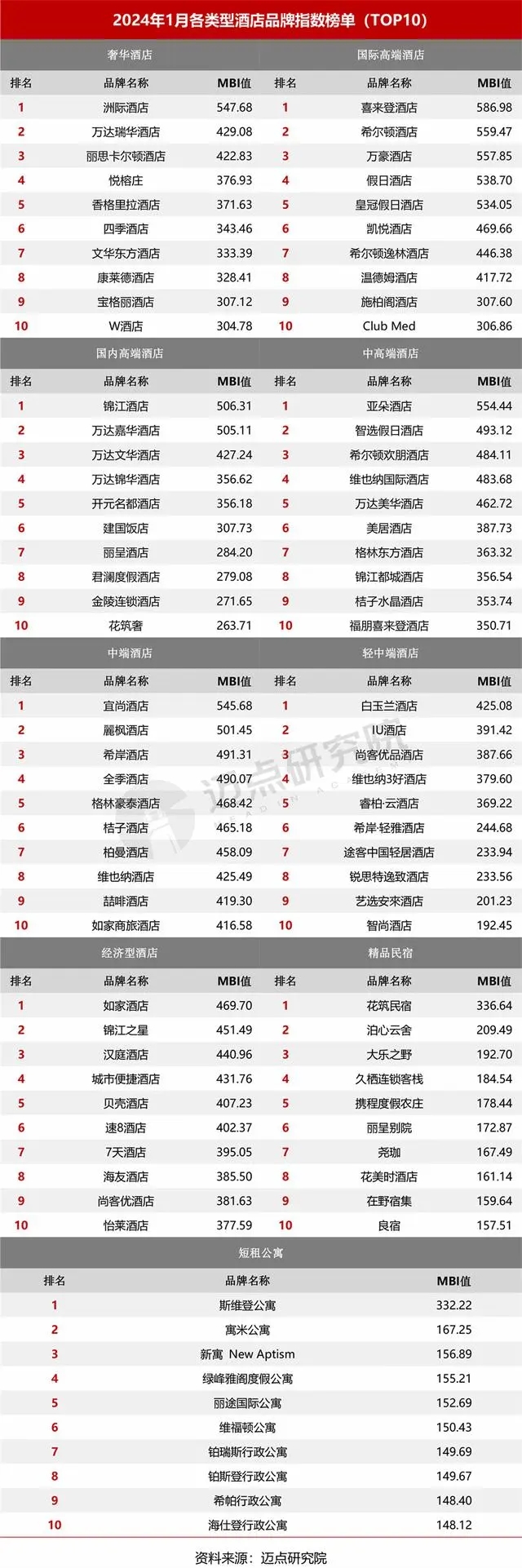 1月酒店投資指數(shù)前十為漢庭酒店、麗楓酒店、全季酒店、維也納國(guó)際酒店、維也納酒店、錦江之星、城市便捷酒店、如家酒店、7天酒店、格林豪泰酒店,指數(shù)均值為120.14。