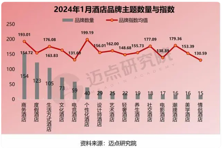 藝術(shù)酒店(232.9)、養(yǎng)生酒店(208.63)、輕奢酒店(204.37)、電競(jìng)酒店(203.93)、電影酒店(178.84)、美學(xué)酒店(174.01)、情侶酒店(145.14)。
