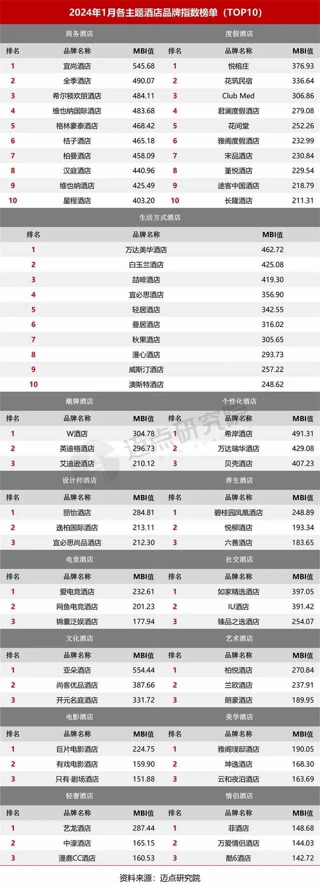 2)酒店主題細(xì)分榜單