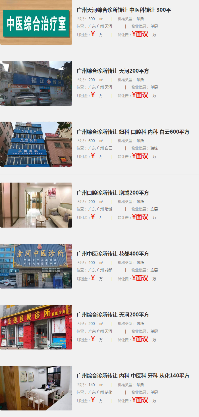 3. 廣州綜合診所轉(zhuǎn)讓(天河200平方米)