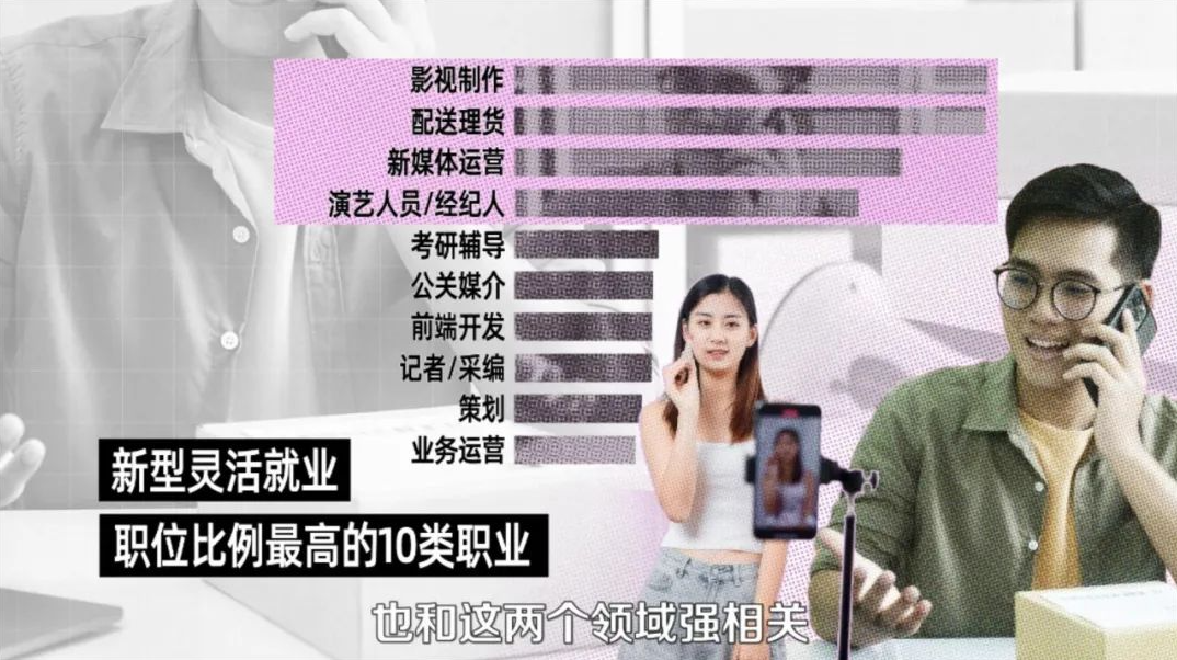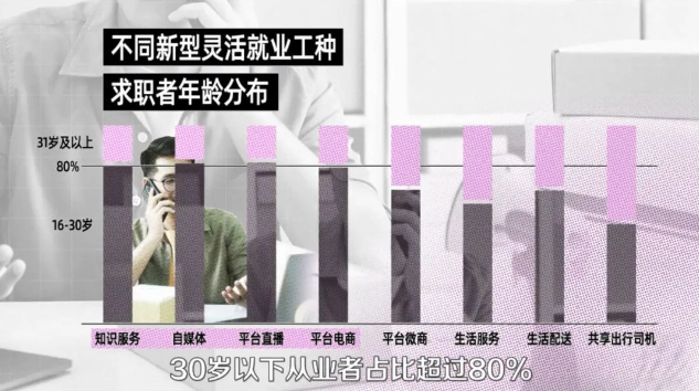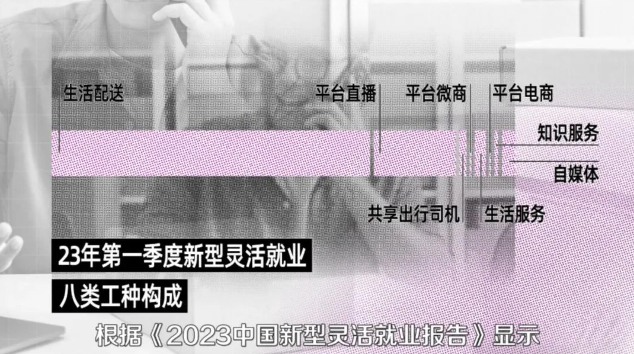 這就不得不提,借著互聯(lián)網(wǎng)崛起的新型靈活就業(yè),具體來說以這8個工種為主(平臺電商、生活配送、生活服務(wù)、平臺微商、知識服務(wù)、自媒體、平合直播、共享出行司機)。根據(jù)《2023中國新型靈活就業(yè)報告》顯示,這8個工種里從業(yè)人數(shù)最多的。