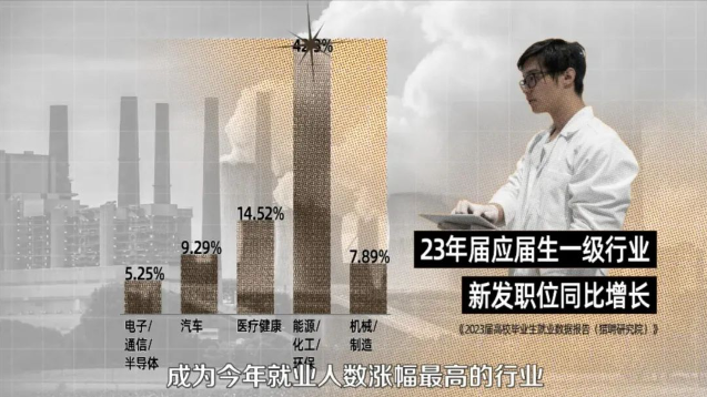 而第二個隱形黑馬,則是受全球碳中和趨勢影響,經(jīng)常跟在能源后面的“小弟”——化工和環(huán)保領(lǐng)域。在《2023屆高校畢業(yè)生就業(yè)數(shù)據(jù)報告(獵聘研究院)》中,以42.3%的驚人漲幅,成為今年就業(yè)人數(shù)漲幅最高的行業(yè)。