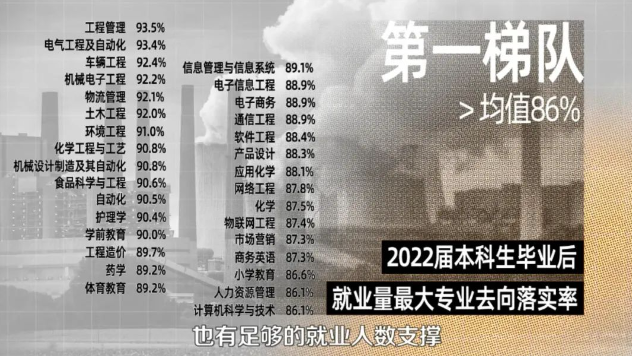 不過總體來看,在剛才的表格中排名前31的專業(yè)都屬于第一梯隊,就業(yè)落實率不僅超過了2022屆的均值86%,也有足夠的就業(yè)人數(shù)支撐,差別不算太大。