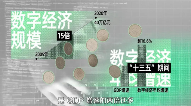 金融對企業(yè)的驅(qū)動力不必多說,企業(yè)如果和互聯(lián)網(wǎng)結(jié)合,能帶來多少經(jīng)濟活力呢?我們只看兩組數(shù)字就行:第一,2020年中國數(shù)字經(jīng)濟規(guī)模近40萬億元,跟 2005年相比翻了15倍;第二,“十三五”期間,我國數(shù)字經(jīng)濟年均增速超過 16.6%,是GDP增速的兩倍還多。