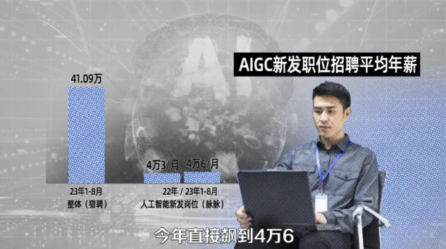 今年的AI可以說是“鍵盤值”最高的行業(yè)了,根據(jù)獵聘最新發(fā)布的《AIGC及其產(chǎn)業(yè)鏈人才需求大數(shù)據(jù)報告》,今年1-8月,因為ChatGPT火起來的AIGC領(lǐng)域各企業(yè)給到的平均年薪高達41萬。脈脈的數(shù)據(jù)更夸張,去年平均月薪4萬3,今年直接飆到4萬6,乘以12個月,年薪已經(jīng)超過了50萬。