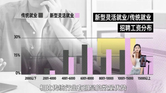 這些工種的共性,就是門檻更低,尤其在學(xué)歷不限和3年以下經(jīng)驗這兩個區(qū)間,新型靈活就業(yè)相比傳統(tǒng)行業(yè)有明顯優(yōu)勢。之所以吸引越來越多的人投身這些工種,除了門檻低,最主要的原因還是工資更高,在8001-15000這個區(qū)間,新型靈活就業(yè)提供的崗位,相比傳統(tǒng)行業(yè)有明顯的數(shù)量優(yōu)勢。