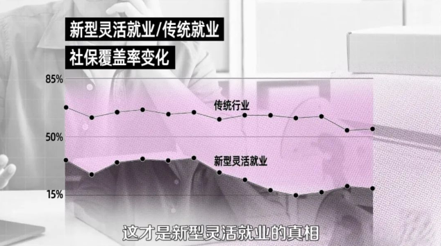 但無論男女,或者年輕與否,通通都要接受一個現(xiàn)實,那就是遠低于傳統(tǒng)行業(yè)的社保覆蓋率,這才是新型靈活就業(yè)的真相。