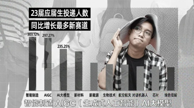 以及很多招聘APP統(tǒng)計數(shù)據(jù)的樣本,多以新興行業(yè)為主,獵聘大數(shù)據(jù)截至4月末的統(tǒng)計中,2023屆應(yīng)屆畢業(yè)生投遞人數(shù)增長最快的前三個行業(yè)智能制造、AIGC(生成式人工智能)、AI大模型,無一例外都是普通人難以企及的領(lǐng)域。