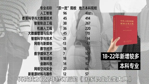 查一下每年瞄準國家戰(zhàn)略新增的大學(xué)專業(yè),再找找2022年修訂后的《國家職業(yè)分類大典》,看看標注了哪些新職業(yè),就能找到答案。