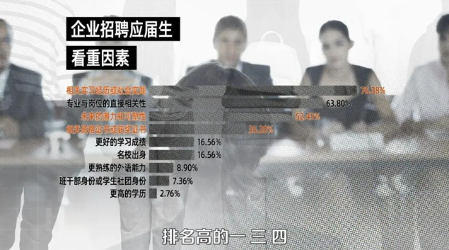 而面對當前的就業(yè)壓力,在讀本科生和應(yīng)屆畢業(yè)生,除了持續(xù)學(xué)習(xí)、不要著急之外,如何在畢業(yè)前就打好地基才是關(guān)鍵。獵聘的一項面對企業(yè)的調(diào)研中,企業(yè)招聘應(yīng)屆生最看重的三大要素,排名高的相關(guān)實習(xí)經(jīng)歷或社會實踐、未來潛力和可塑性、相關(guān)資格證書或獲獎證書都是最基本的。