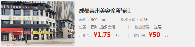 2.成都彭州醫(yī)美整形診所轉(zhuǎn)讓