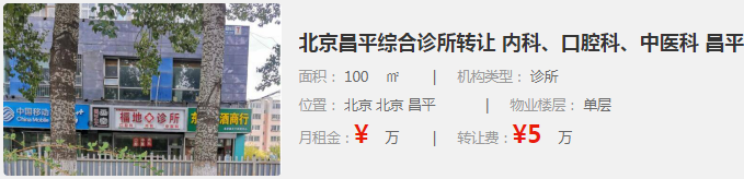 5、昌平100平方綜合診所轉(zhuǎn)讓(內(nèi)科、口腔科、中醫(yī)科)