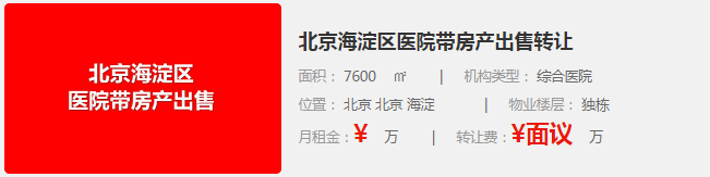 北京海淀區(qū)醫(yī)院帶房產(chǎn)出售轉(zhuǎn)讓
